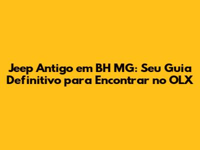 Onde Encontrar Jeeps Antigos em BH MG: O Poder do OLX