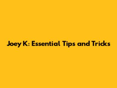 Joey K: Essential Tips And Tricks