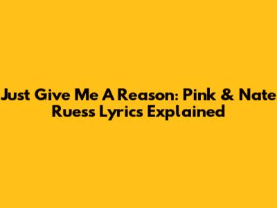 Hey guys! Let's dive into the emotional rollercoaster that is "Just Give Me A Reason" by the amazing P!nk featuring Nate Ruess. This song, man, it hits you right in the feels, doesn't it? It's all about those tough moments in a relationship where you're questioning everything, and one person is desperately trying to hold on while the other is pulling away. We're gonna break down these lyrics, paragraph by paragraph, so you can really get what P!nk and Nate are pouring their hearts out about. Trust me, once you understand the story behind these words, you'll appreciate the raw honesty and vulnerability even more. So, grab your headphones, maybe a tissue, and let's get into it!