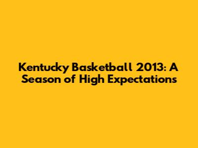 Kentucky Basketball 2013: A Season Of High Expectations