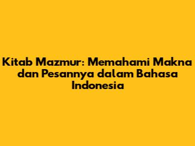 Kitab Mazmur: Memahami Makna Dan Pesannya Dalam Bahasa Indonesia