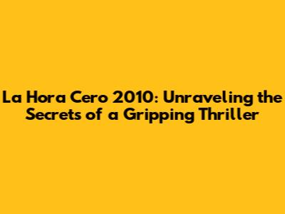 La Hora Cero 2010: A Deep Dive Into The Thriller