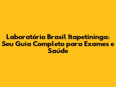 Laboratório Brasil Itapetininga: Exames E Serviços Detalhados