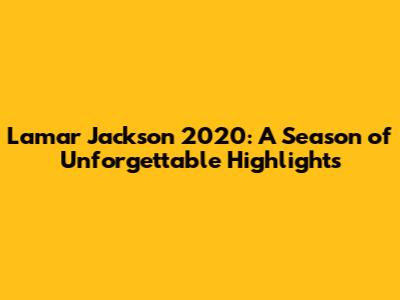 Lamar Jackson 2020: A Season Of Unforgettable Highlights