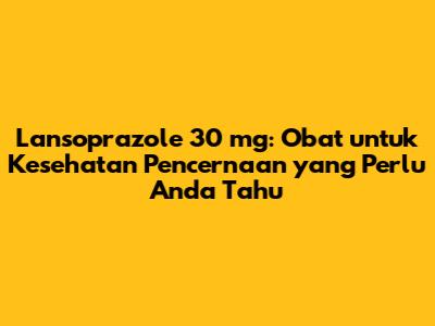 Apa Itu Lansoprazole 30 mg?