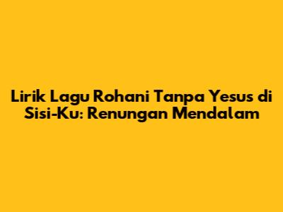 Lirik lagu rohani tanpa Yesus di sisi-Ku adalah cerminan dari kerinduan manusia akan Tuhan. Lagu-lagu ini mengungkapkan berbagai perasaan dan pengalaman yang dialami dalam perjalanan iman, mulai dari pengakuan akan kelemahan diri hingga kerinduan akan kehadiran Tuhan. Dengan menganalisis pesan-pesan yang terkandung dalam lirik-lirik tersebut, kita dapat memahami makna yang lebih dalam tentang iman, harapan, dan kasih. Lagu-lagu rohani memiliki kekuatan yang luar biasa dalam menguatkan iman, memberikan penghiburan, harapan, dan inspirasi bagi umat beriman. Mari kita terus mendengarkan dan merenungkan lirik-lirik lagu rohani untuk memperdalam hubungan kita dengan Tuhan dan menjalani hidup yang berarti.