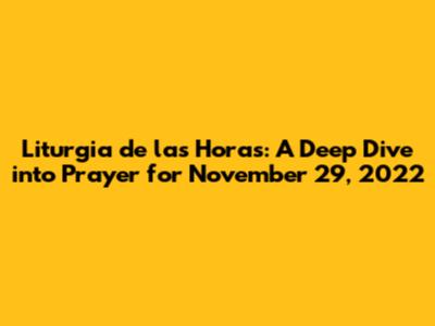 Hey everyone! Let's dive into the Liturgia de las Horas for November 29, 2022. For those unfamiliar, the Liturgia de las Horas (Liturgy of the Hours) is the official daily prayer of the Catholic Church. It's also known as the Breviary. It's a way for us, as Catholics, to connect with God throughout the day, following a rhythm of prayer and reflection. Think of it as a spiritual GPS guiding us through the day, centering our thoughts and actions around faith. This isn't just some old tradition; it's a vibrant way to engage with the Scriptures, pray together with the Church across the globe, and find peace in our busy lives. The Liturgy of the Hours is a beautiful way to immerse ourselves in prayer, using the Psalms, readings from Scripture, and other prayers that change with the liturgical calendar.