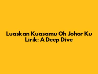 Hey guys! Let's dive deep into the anthem of Johor, "Luaskan Kuasamu Oh Johor Ku." This song isn't just a tune; it's a powerful expression of identity, pride, and the rich cultural heritage of Johor. In this article, we're going to dissect the lyrics, explore the meaning behind them, and understand why this song resonates so deeply with the people of Johor. Whether you're a Johorean or just curious about Malaysian culture, buckle up for an insightful journey!
