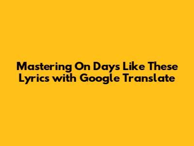 Maximizing Your "On Days Like These" Lyrics Translation Experience