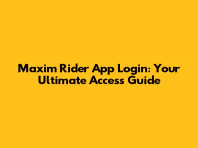 Maxim Rider App Login: Your Ultimate Access Guide