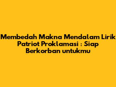 Patriot Proklamasi, siapa sih yang nggak kenal lagu ini? Lagu kebangsaan yang sering banget kita dengar, terutama pas momen-momen penting seperti upacara bendera atau peringatan hari kemerdekaan. Tapi, pernahkah kalian benar-benar merenungkan makna di balik liriknya? Khususnya, potongan lirik yang berbunyi 'sedia berkorban untukmu'? Nah, kali ini, kita bakal bedah tuntas makna mendalam dari penggalan lirik tersebut. Jadi, siap-siap ya, guys, karena kita bakal menyelami semangat patriotisme dan pengorbanan yang terkandung di dalamnya.