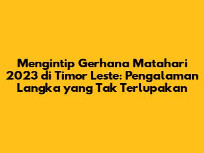 Gerhana Matahari 2023 di Timor Leste adalah peristiwa yang sangat dinantikan yang menawarkan peluang besar bagi pariwisata, ekonomi, dan masyarakat setempat. Dengan persiapan yang matang, kerjasama yang baik antara pemerintah, bisnis, dan masyarakat, serta promosi yang efektif, Timor Leste dapat memanfaatkan momen langka ini untuk meningkatkan citra negara, meningkatkan pendapatan, dan mempererat hubungan sosial. Jangan lewatkan kesempatan untuk menyaksikan keajaiban alam ini dan merasakan keindahan Timor Leste.