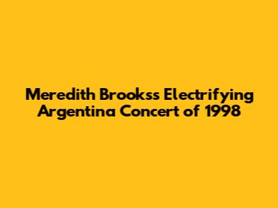 Hey music lovers, ever get lost in the vibes of a killer concert? I'm talking about the kind of show that just sticks with you, years later. Well, let me take you back to 1998, a year that was pretty epic for music, especially if you were lucky enough to catch Meredith Brooks in Argentina. This wasn't just any gig, folks; it was a moment. The energy, the music, the crowd – it all blended into something unforgettable. I'm going to dive deep into what made this concert so special, talking about the songs, the atmosphere, and why it still gets talked about today. If you're a fan of Meredith Brooks or just love a good concert story, you're in for a treat. Let's rewind the clock and relive the magic of Meredith Brooks in Argentina, shall we?