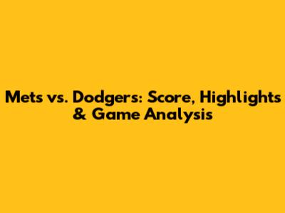 Mets Vs. Dodgers: Score, Highlights & Game Analysis