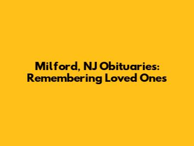 Finding milford nj obituaries can be a sensitive and important task. By utilizing online resources, local funeral homes, and newspaper archives, you can locate the information you need to honor the lives of those who have passed away. Remember to be patient and persistent in your search, and don't hesitate to reach out to funeral homes or other resources for assistance. Additionally, if you are dealing with grief, be sure to seek support from others and allow yourself time to heal. The Milford community is here to support you during this difficult time. By working together, we can honor the memories of our loved ones and provide comfort to those who are grieving. Whether you're searching for an obituary to pay your respects, gather information for genealogical research, or simply find closure, remember that you are not alone. The resources and support you need are available, and the Milford community is here to help you through this process. Take your time, be kind to yourself, and remember the love and memories that will always remain.