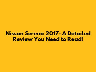 Hey guys! Today, we're diving deep into the Nissan Serena 2017. If you're in the market for a family-friendly MPV (Multi-Purpose Vehicle), you've probably got this one on your radar. Let's break down everything you need to know, from its features and performance to its pros and cons, so you can make an informed decision. Is the 2017 Nissan Serena the right choice for you and your family? Let's find out!