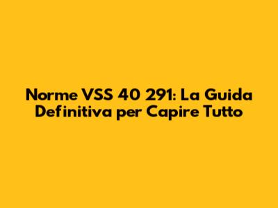 Cosa Diavolo è la Norme VSS 40 291? Un'Introduzione