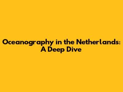 Oceanography In The Netherlands: A Deep Dive