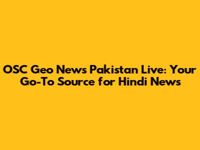 OSC Geo News Pakistan Live: Latest Updates & Headlines