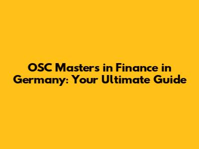 OSC Masters In Finance In Germany: A Complete Guide
