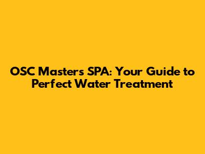 OSC Masters SPA: Your Guide To Perfect Water Treatment