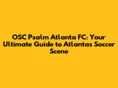 OSC Psalm Atlanta FC: Your Guide To Atlanta's Soccer Scene