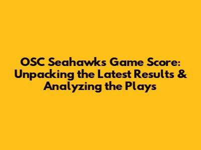 OSC Seahawks Game Score: Latest Results & Analysis