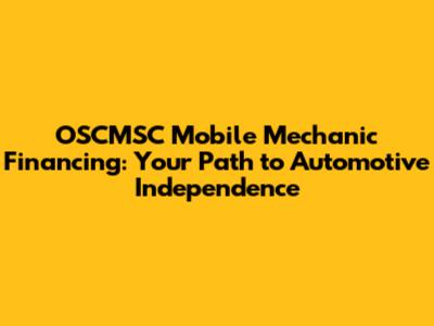 OSCMSC Mobile Mechanic Financing: Get Your Wheels Turning!
