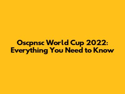 Oscpnsc World Cup 2022: All You Need To Know