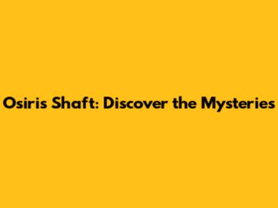Unraveling the Secrets: What Makes the Osiris Shaft So Special?