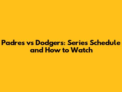 Padres Vs Dodgers: Series Schedule And How To Watch