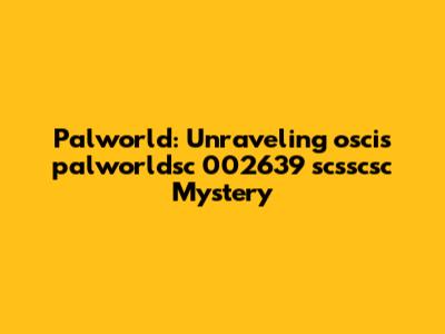 Palworld: Unraveling 'oscis Palworldsc 002639 Scsscsc' Mystery