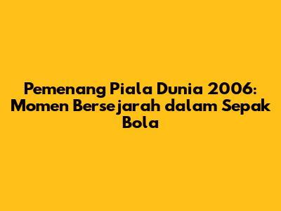 Guys, mari kita selami dunia sepak bola dan membahas salah satu turnamen paling berkesan dalam sejarah olahraga ini: Piala Dunia 2006! Pertandingan yang diadakan di Jerman ini bukan hanya sekadar kompetisi, melainkan sebuah perayaan budaya, semangat, dan tentu saja, kemampuan sepak bola terbaik dari seluruh dunia. Kalian penasaran kan siapa yang berhasil mengangkat trofi emas itu? Nah, dalam artikel ini, kita akan membahas secara mendalam tentang pemenang Piala Dunia 2006, melihat kembali perjalanan mereka, momen-momen kunci, dan dampak kemenangan tersebut terhadap sepak bola secara global. Kita akan menelusuri bagaimana tim-tim hebat berjuang, strategi yang digunakan, dan bagaimana turnamen ini membentuk sejarah sepak bola yang kita kenal hari ini. Jadi, siap-siap untuk bernostalgia dan mempelajari lebih lanjut tentang salah satu babak paling menarik dalam sejarah Piala Dunia!