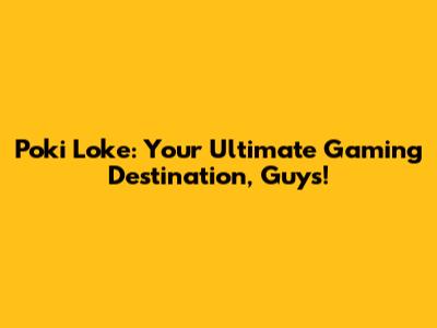 Poki Loke: Your Ultimate Gaming Destination, Guys!