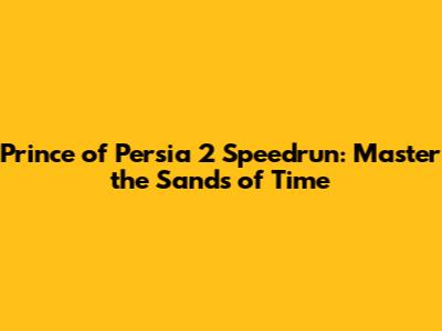 Prince Of Persia 2 Speedrun: Master The Sands Of Time