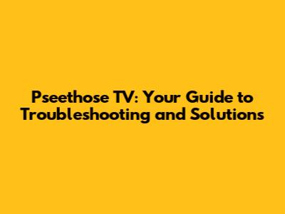 Pseethose TV: Troubleshooting Common Issues And Finding Solutions