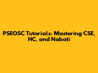 PSEOSC Tutorials: Mastering CSE, HC, And Nabati