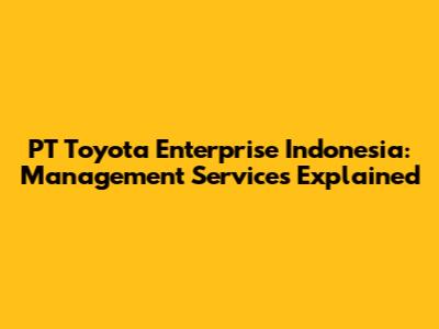 PT Toyota Enterprise Indonesia: Management Services Explained