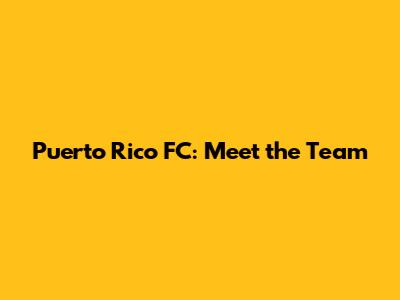 Puerto Rico FC: Meet The Team