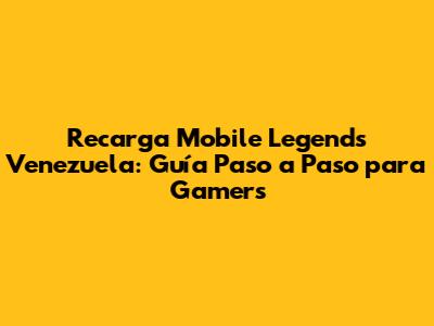 Recarga Mobile Legends En Venezuela: Guía Completa