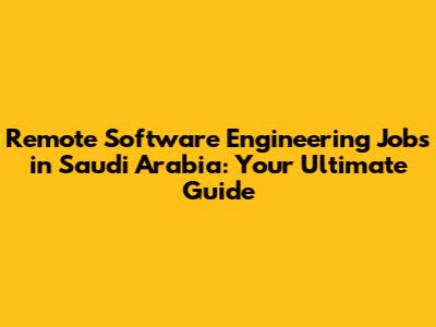 Remote Software Engineering Jobs In Saudi Arabia