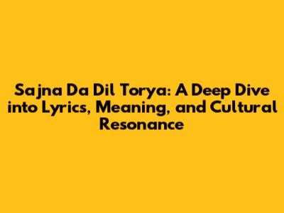 Sajna Da Dil Torya: Lyrics, Meaning, And Cultural Impact