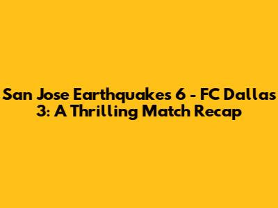 San Jose Earthquakes Vs FC Dallas: Thrilling 6-3 Victory!