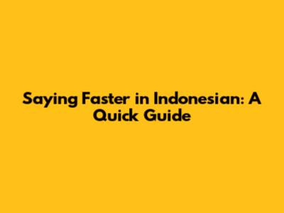 Saying 'Faster' In Indonesian: A Quick Guide