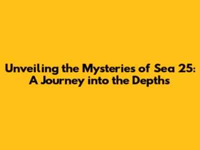 Unveiling the Mysteries of Sea 25: A Journey into the Depths