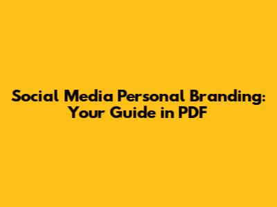 Social Media Personal Branding: Your Guide In PDF