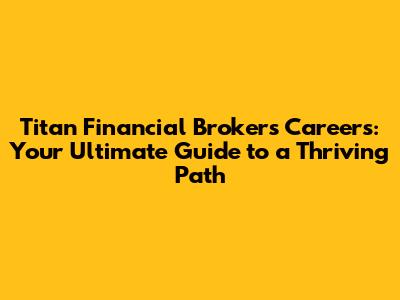 Titan Financial Brokers: Your Career Path Unveiled