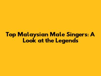 Top Malaysian Male Singers: A Look At The Legends