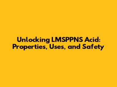 Unlocking LMSPPNS Acid: Properties, Uses, And Safety