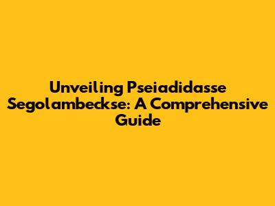 Unlocking The Secrets Of Pseiadidasse Segolambeckse